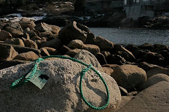 During the lobstering off-season, Dan has begun a new business. He hand-splices the outlawed rope into dog leashes.